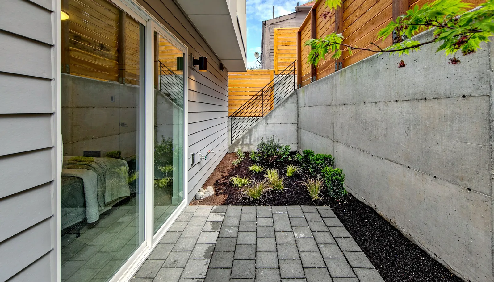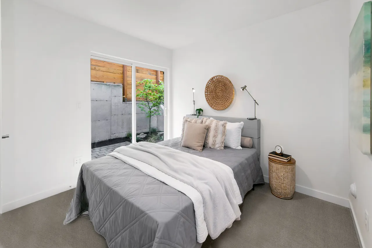 The entry level welcomes you inside with a secluded bed, bath, patio, and extra storage. Upstairs the primary living space brings ease of life...